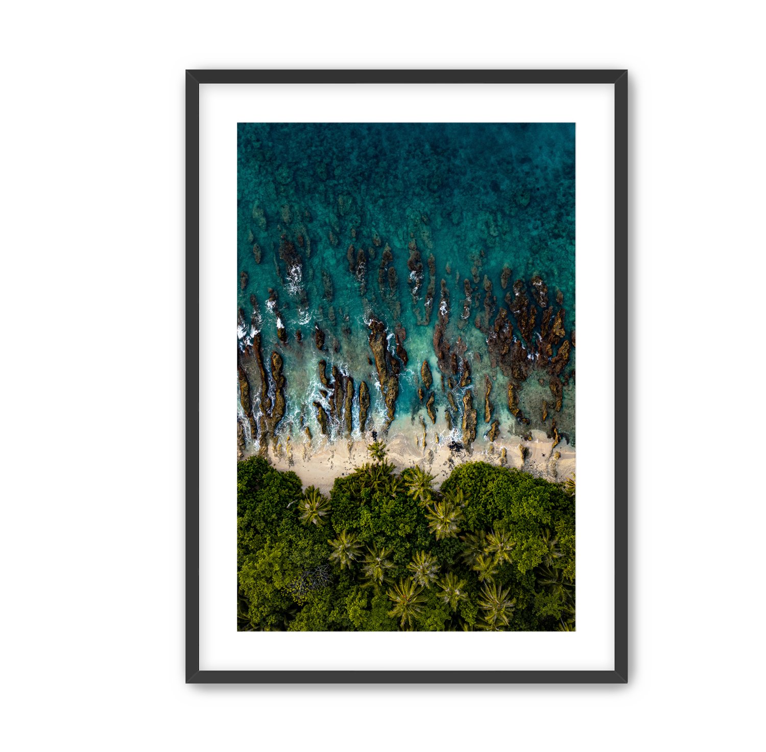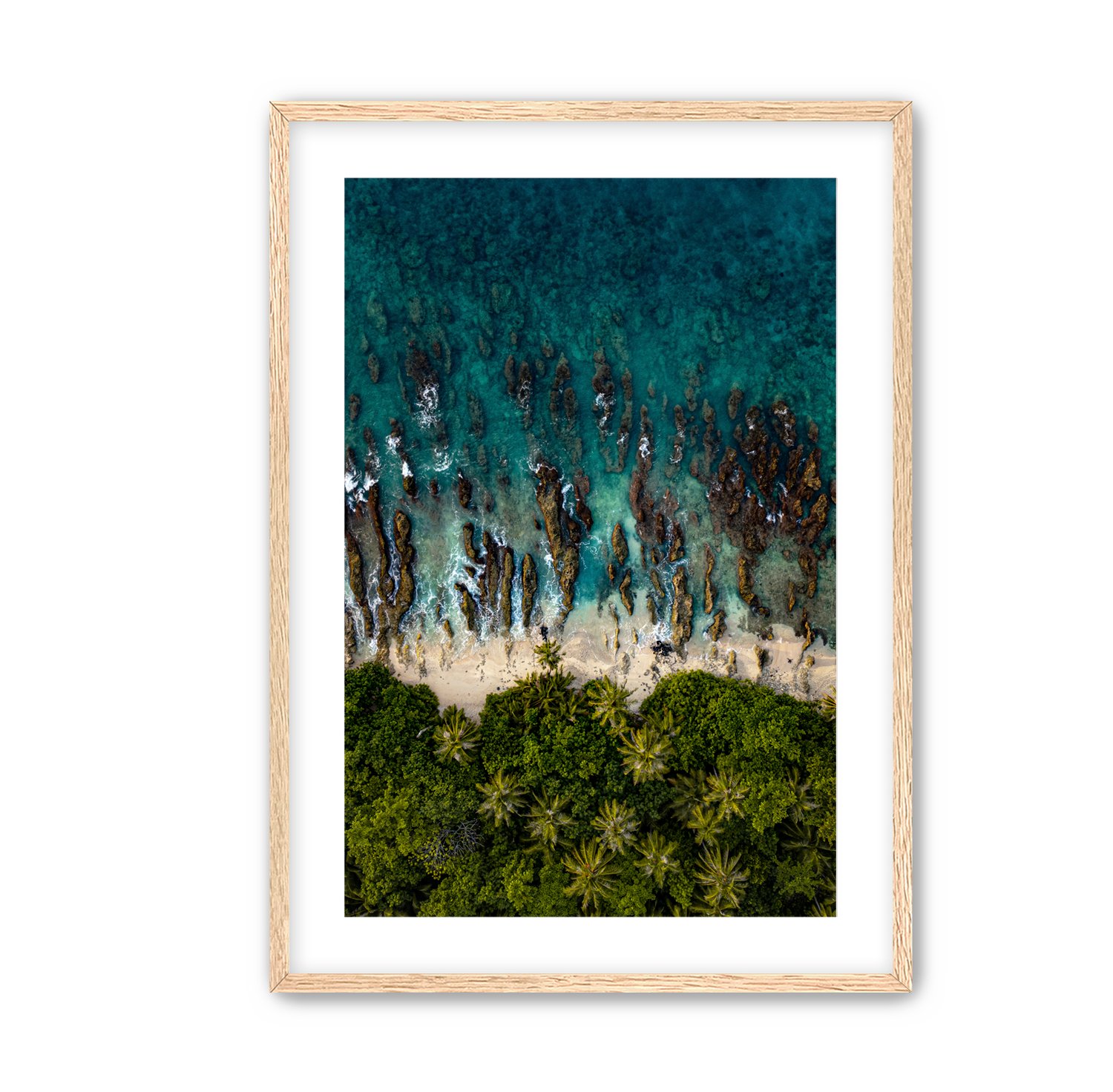 Abstract aerial view of a remote island atoll in the Mentawais Archipelago in Sumatra, Indonesia.
